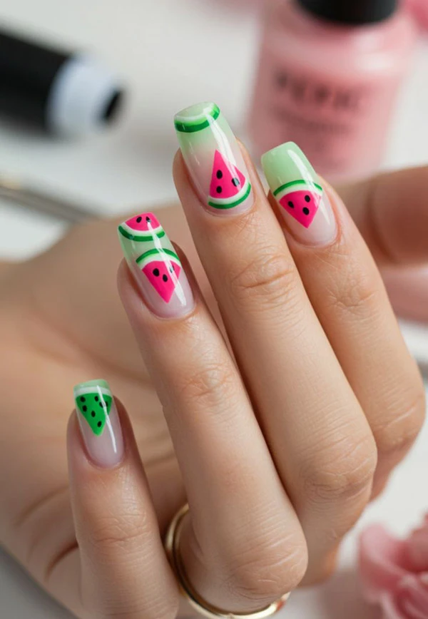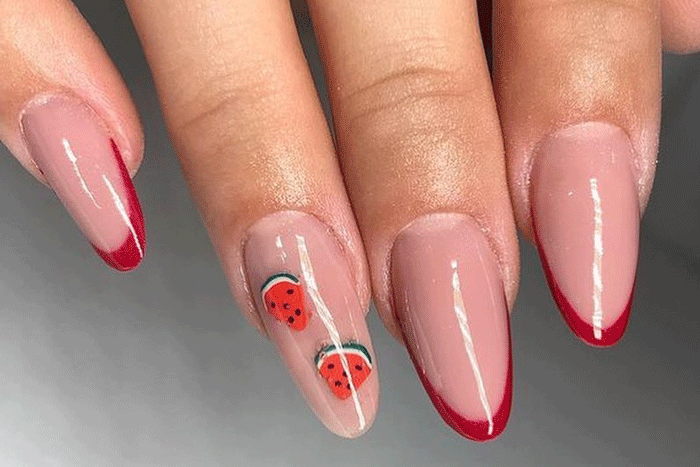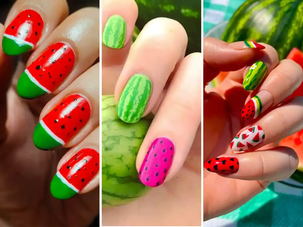 - یک یا دو ناخن با طرح هندوانه نصفشده