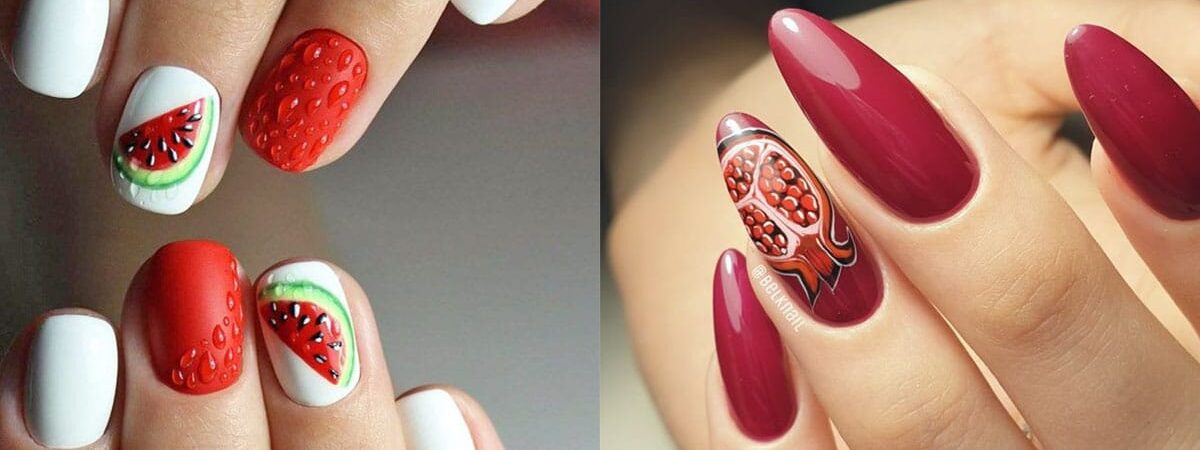 - روی یکی از ناخنها طرح هندوانه یا انار